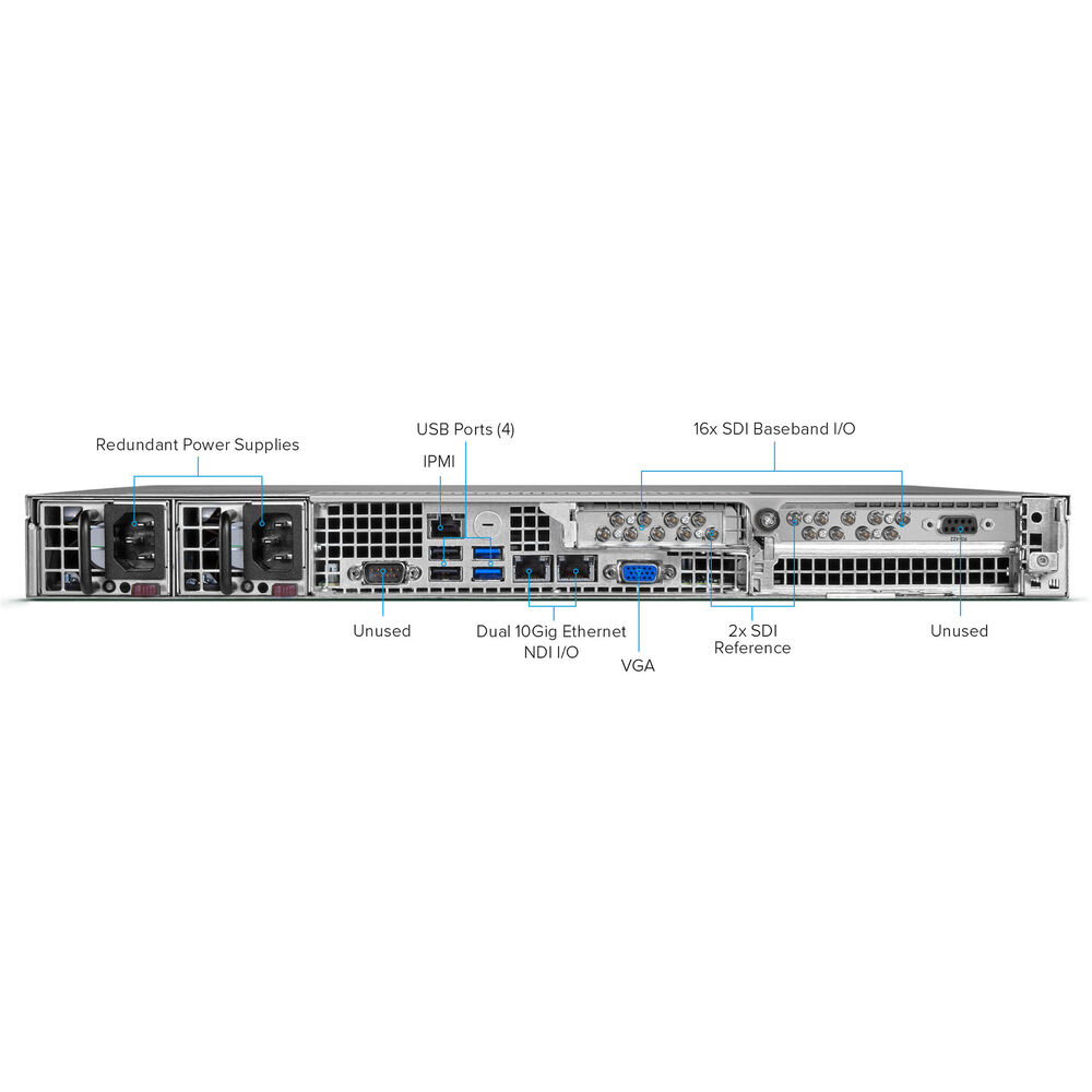 Accepts up to 16 incoming HD video signals via 3G-SDI and applies NDI encoding to each channel, enabling up to 16 individual HD NDI channels to be output via 10 GigE.