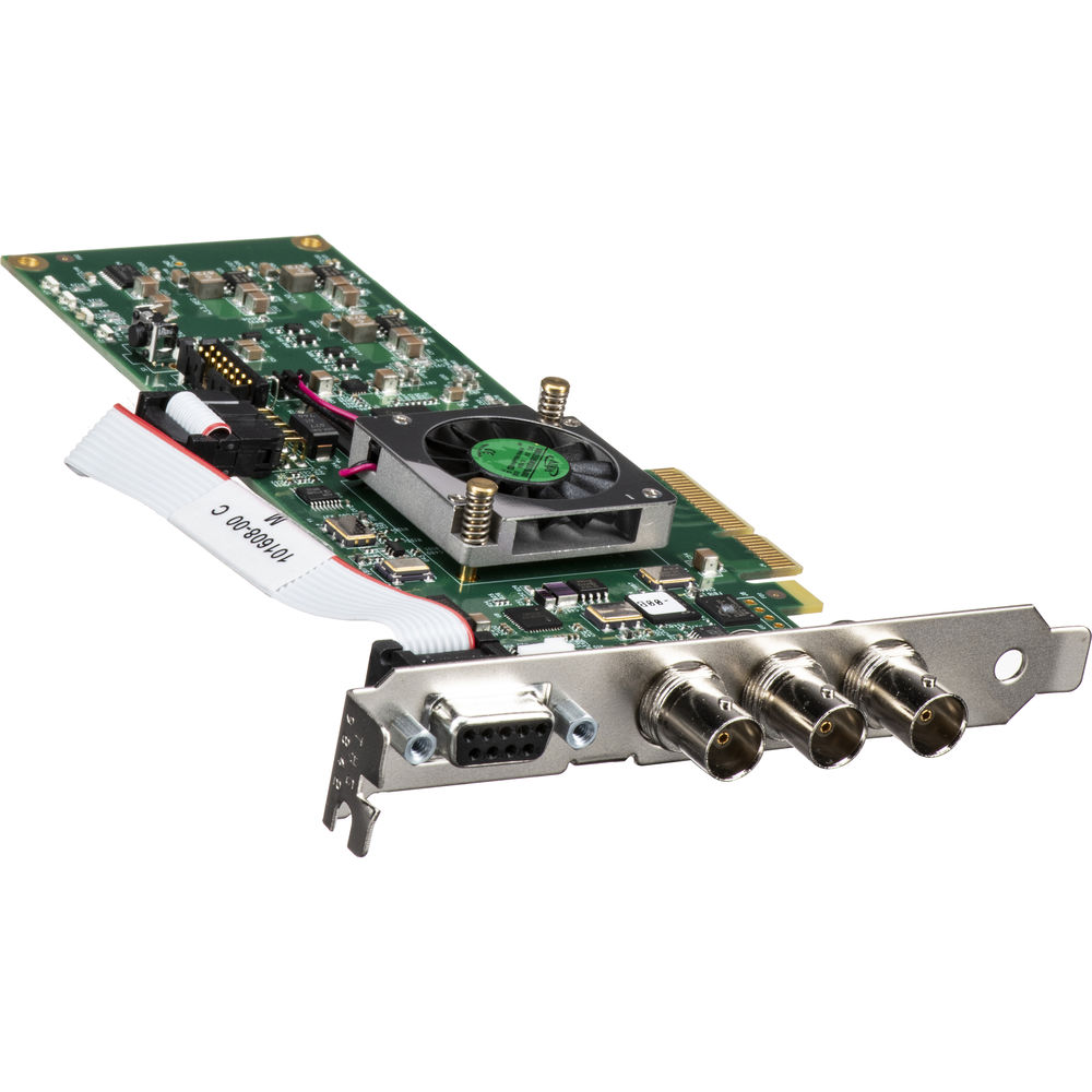 The AJA KONA 1-T is the tall, consumer version of the KONA 1 capture and playback card. It's Mac/Windows/Linux 2-lane PCIe 2.0-compatible and offers single-channel 3G-SDI 2K/HD 60p frame-accurate input/output and a selectable reference/LTC input. It also features an integrated, exposed 9-pin RS-422 control port (while the short version is designed for OEM developers and comes without this port). The KONA 1-T allows efficient capture, monitoring, and/or playback and also supports simultaneous monitoring during capture.