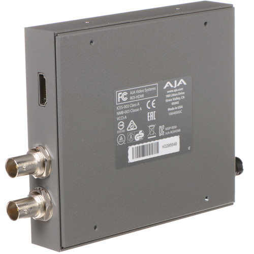 If you're using a computer with an HDMI output as a video source, the AJA ROI-HDMI Mini Converter allows you to select a region of interest and scale the output to fit your working resolution. Having ROI in hardware makes it easy to broadcast part of your computer's screen without the clutter of on-screen menus and the like. And because all the cropping and scaling is done using integrated hardware, video quality remains at a high standard. Embedded audio is passed through to the HDMI loop output and the SDI output. With the 3.5mm jack, you have the option of embedding analog stereo audio into the video output.