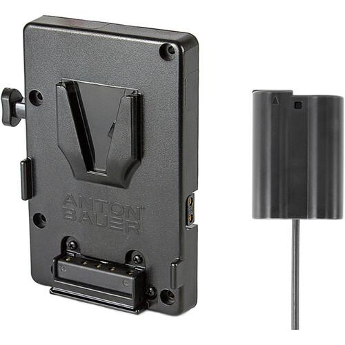 This Anton Bauer Battery Plate with Dummy Battery for Select Nikon Cameras has an integrated V-mount plate and enables using a V-mount battery to power your Nikon D500, D610, D750, D800, D7000, D7100, D7200, D7500, Z6, or Z7 camera. It features power regulation built into the plate that provides 9 VDC output to the 16" long cable with a coaxial connector. The plate features four mounting holes with mounting screws for attaching the bracket to a mounting plate of your choosing. The bracket also has two unregulated P-Tap ports for powering accessories.