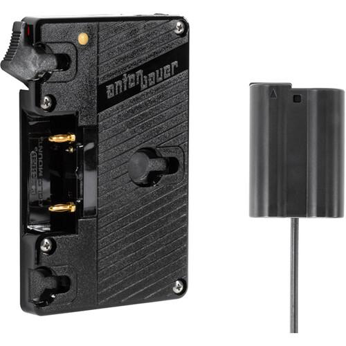 Power your Nikon D500, D610, D750, D800, D7000, D7100, D7200, D7500, Z6, or Z7 camera or other gear using a Gold mount battery such as the Titon or Titon Micro with this Gold Mount Battery Bracket with P-Tap and Nikon EN-EL15 Dummy Battery Output from Anton/Bauer. The bracket features a Nikon EN-EL15 dummy battery to power cameras such as the Nikon D500, D610, D750, D800, D7000, D7100, D7200, D7500, Z6, or Z7, and it accepts one separately available Gold mount battery such as the Titon or Titon Micro. It can also output power for your camera or accessories using its two P-Tap outputs.