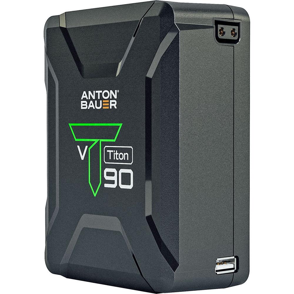 Providing a basic power readout and no user interactive surfaces, the Anton Bauer Titon 90 V-Mount Lithium-Ion Battery can be used to power your V-mount camera or other pro video gear. The lightweight lithium-ion chemistry can provide up to 10 amps of current on a continuous draw and support peaks of up to 12.5 amps for five seconds. At the side of the chassis, an LCD display screen shows battery capacity in percent remaining, and when put under load it shows the exact remaining runtime. Using the D-Tap and USB ports you can power essential accessories on your rig or other small electronics.