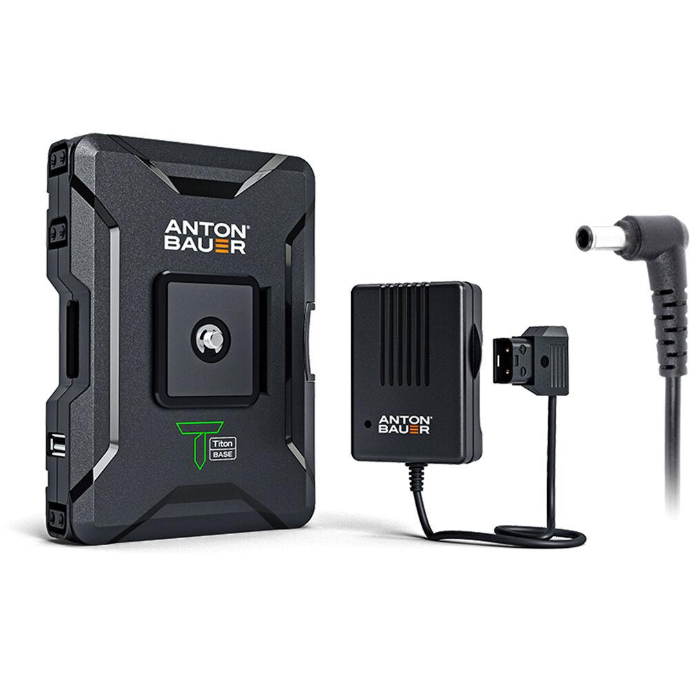An LCD screen displays the remaining battery time down to the minute and features power three P-Tap outputs, each with charging input capability, and one fast-charge 5V, 2A USB Type-A output. The Titon Base can provide up to 8A of current on a continuous draw using its 68Wh capacity. It can be charged using the Anton Bauer P-Tap charger with one of the P-Tap ports. It also includes an integrated quick release plate with a 1/4"-20 mounting screw so it can be quickly mounted onto your rig.