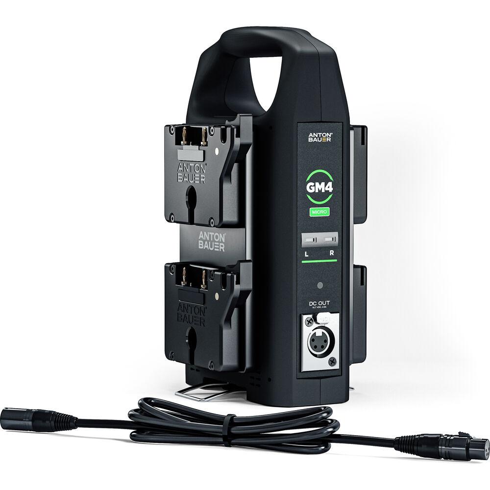 Simultaneously charge four high-capacity Micro batteries quickly while powering another device using this Gold mount GM4 Quad Micro Battery Charger from Anton/Bauer. This four-bay, simultaneous Gold mount battery charger is aimed at location shoots, rental facilities, ENG/EFP/OB vehicles, broadcast equipment depots, or productions that require many batteries to be on charge and ready to go.