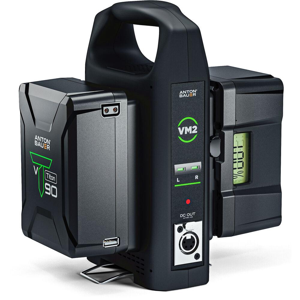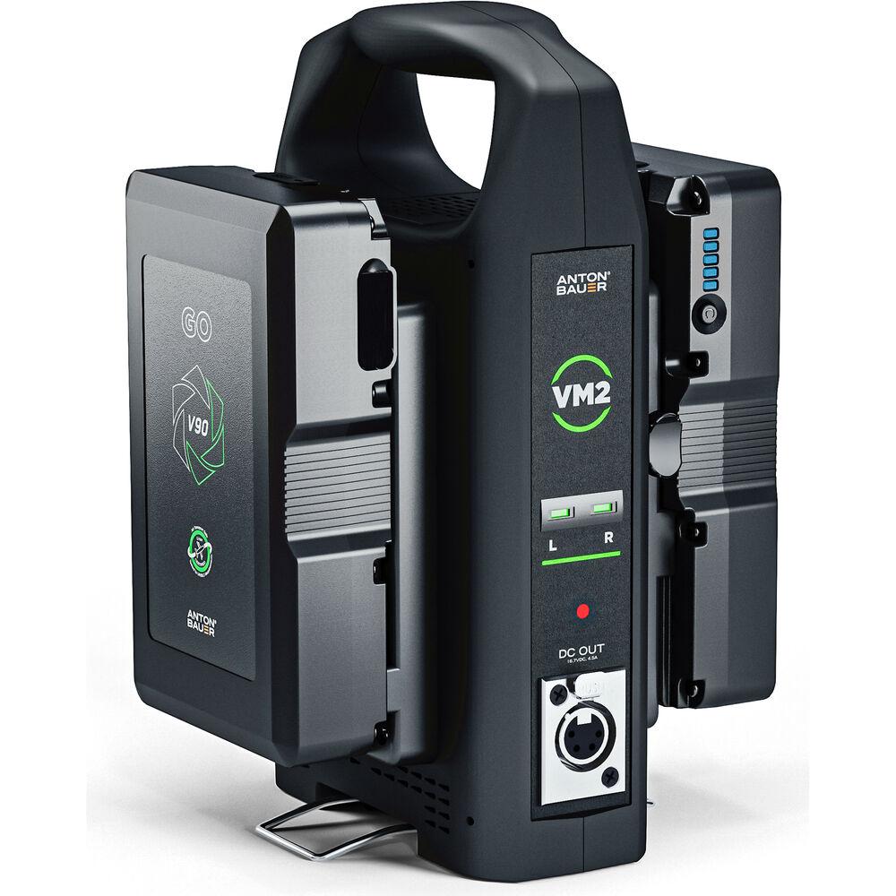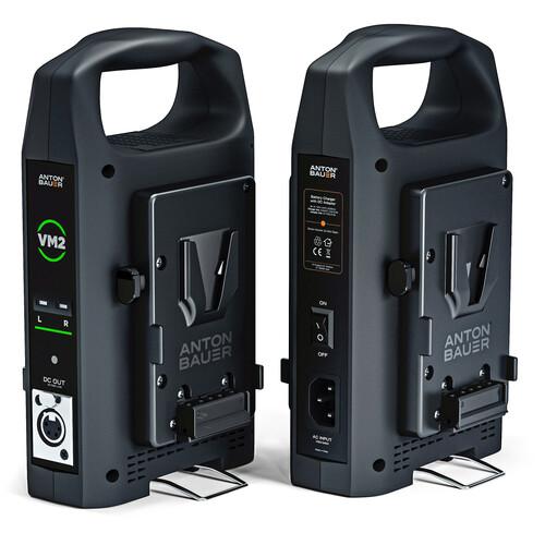 This slim V-mount Anton Bauer VM2 Dual-Bay Charger with 4-Pin XLR Output allows you to simultaneously charge two V-mount batteries (or a single battery) from 100 to 240 VAC sources, and it supports worldwide power of 50/60 Hz. The charger can also output 16.7 VDC through the 4-pin XLR while charging batteries, allowing you to power your camera and charge your batteries simultaneously.