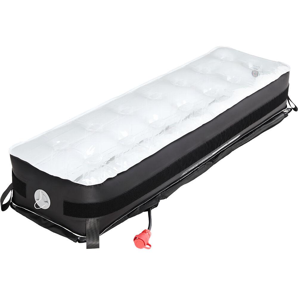 The INFINIMAT LED with Clear Softbox & 400W Control Box Pack from Aputure includes a 1 x 4' modular, full-color RGBWW LED light mat that offers multiple mounting and rigging methods. The light pack also includes a clear inflatable softbox, 1-stop and 2-stop diffusion cloths, a light control grid, a light control skirt, a mini air pump, a mounting bracket, a K-mount arm with a straight 5/8" pin, a patch kit, a 24.6' head cable, and a carry case.