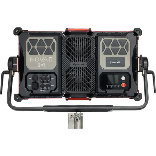 Among the NOVA II 2x1's features is reliable and advanced control. Users can opt for the intuitive onboard or app control, or go with 16-bit DMX512 in/out, LumenRadio CRMX, Art-Net/sACN, as well as USB or DMX batch firmware upgrades. Experience multiple dimming curves, four fan modes, and dual output modes with max and constant settings. Another fact that will impress gaffers and lighting technicians is a direct front-mounting accessory system that reduces the complexity of mounting slide-in modifiers by providing a quicker light shaping solution. Finally, a rugged IP65-rated body was attentively engineered for the most demanding productions. Here, Aputure includes a conveniently removable yoke, a flat diffuser, and a 19.6' long AC power cable.