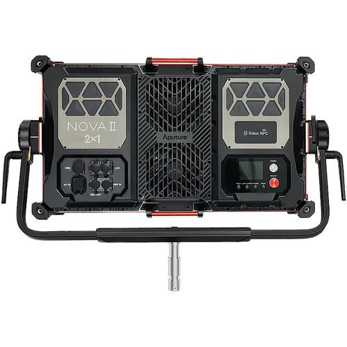 Among the NOVA II 2x1's features is reliable and advanced control. Users can opt for the intuitive onboard or app control, or go with 16-bit DMX512 in/out, LumenRadio CRMX, Art-Net/sACN, as well as USB or DMX batch firmware upgrades. Experience multiple dimming curves, four fan modes, and dual output modes with max and constant settings. Another fact that will impress gaffers and lighting technicians is a direct front-mounting accessory system that reduces the complexity of mounting slide-in modifiers by providing a quicker light shaping solution. Finally, a rugged IP65-rated body was attentively engineered for the most demanding productions. Here, Aputure includes a conveniently removable yoke, a flat diffuser, and a 19.6' long AC power cable.