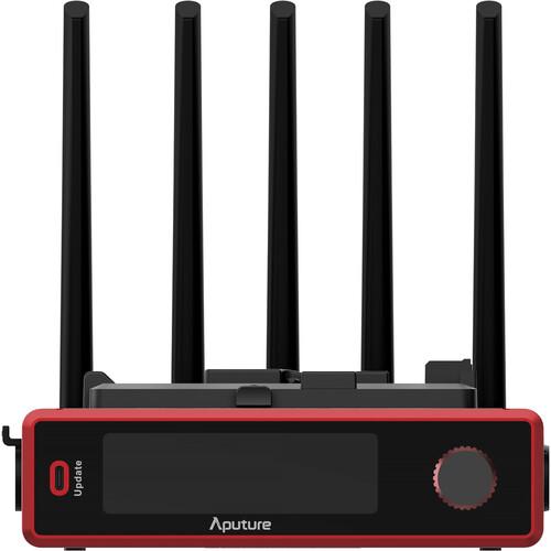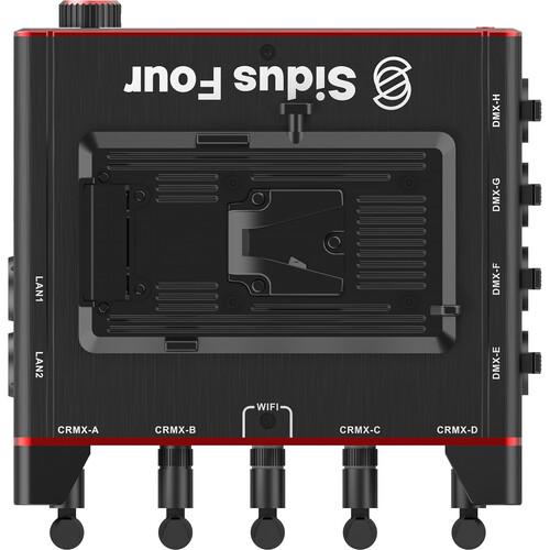 Transmit control via wired and wireless connections to up to 8 universes with the Sidus Four 4-Universe CRMX Transmitter from Aputure. The Sidus Four is a battery-powered transmitter that features four wired 5-pin DMX512 bidirectional ports and support for up to four wireless outputs using CRMX, DMX512, Sidus, Art-Net, and sACN protocols via Wi-Fi, Bluetooth, or Ethernet. The Sidus Four can be expanded to support even more universes.