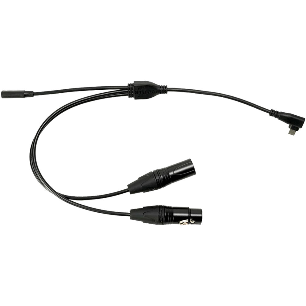 This USB-C to DMX Adapter from Aputure makes it possible to control light fixtures like the Aputure MT Pro or INFINIBAR via DMX. The cable features 5-pin XLR male and female in/out connectors on one end and a male right-angle USB-C connector on the other end to control them with DMX.