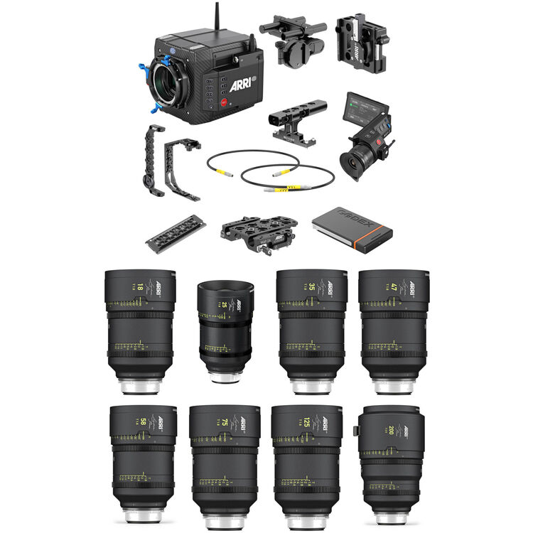 Capture immersive, large-format 4K video using the 8 x Signature Primes & ALEXA Mini LF Ready-to-Shoot Set B from ARRI. This cost-saving kit combines eight LPL-mount Signature primes with an ALEXA Mini LF camera set incorporating a PL-to-LPL lens adapter, a 19mm Studio baseplate with a 15mm insert, a Gold mount splitter box, an MVF-2 HDR EVF, two 1TB Codex drives, cage components, and other essential camera components. The eight-lens Signature prime set consists of 18, 25, 35, 47, 58, 75, 125, and 200mm lenses, spanning a wide range of focal lengths. Read more below about each item in this kit.