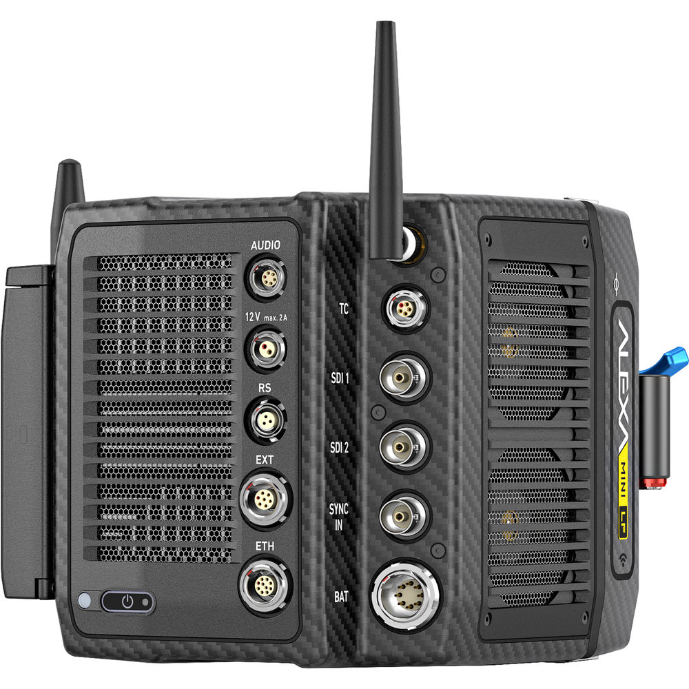 The ALEXA Mini LF is a hybrid of the ALEXA Mini and the ALEXA LF, as it retains the same LF sensor but has the form factor of the Mini. The new exterior has a left-side media bay with two rows of connectors on the back and a slot to insert 1TB Codex media. It also features six user buttons, three more than the Mini, to configure to your preference. It also features extra 12 and 24V power outputs and a black burst/tri-level input. The audio connector is now 6-pin, so it doesn't conflict with the 5-pin timecode port.