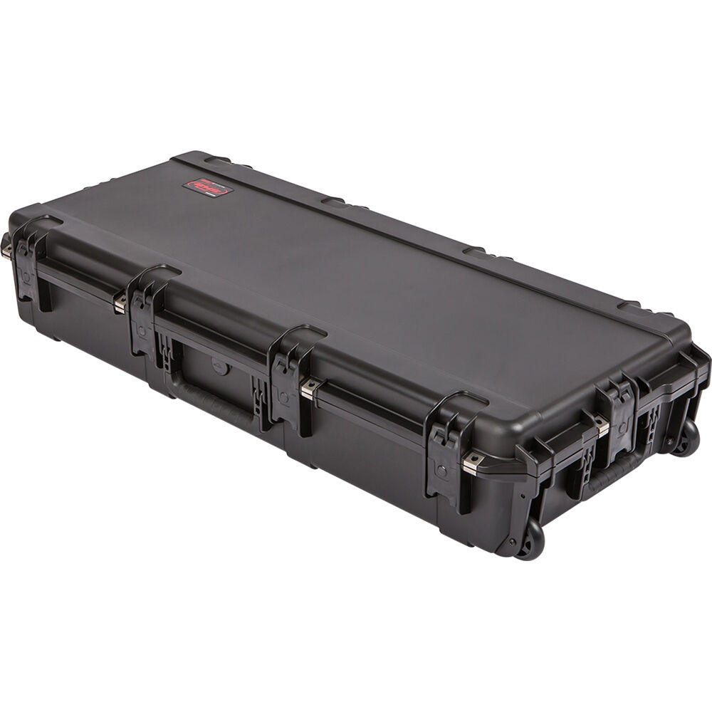 Protect your camera stabilizer with the black Case for TRINITY 2 & ARTEMIS Gen 2 Rig from ARRI. This waterproof SKB 3i-4217-7 hard case is rated IP67 and certified MIL-STD-648C standard. It features an automatic ambient pressure valve, in-line, skate-style wheels, comfortable overmolded rubber handle grips, and trigger-release latches that can be retrofitted with TSA-compatible locking latches.