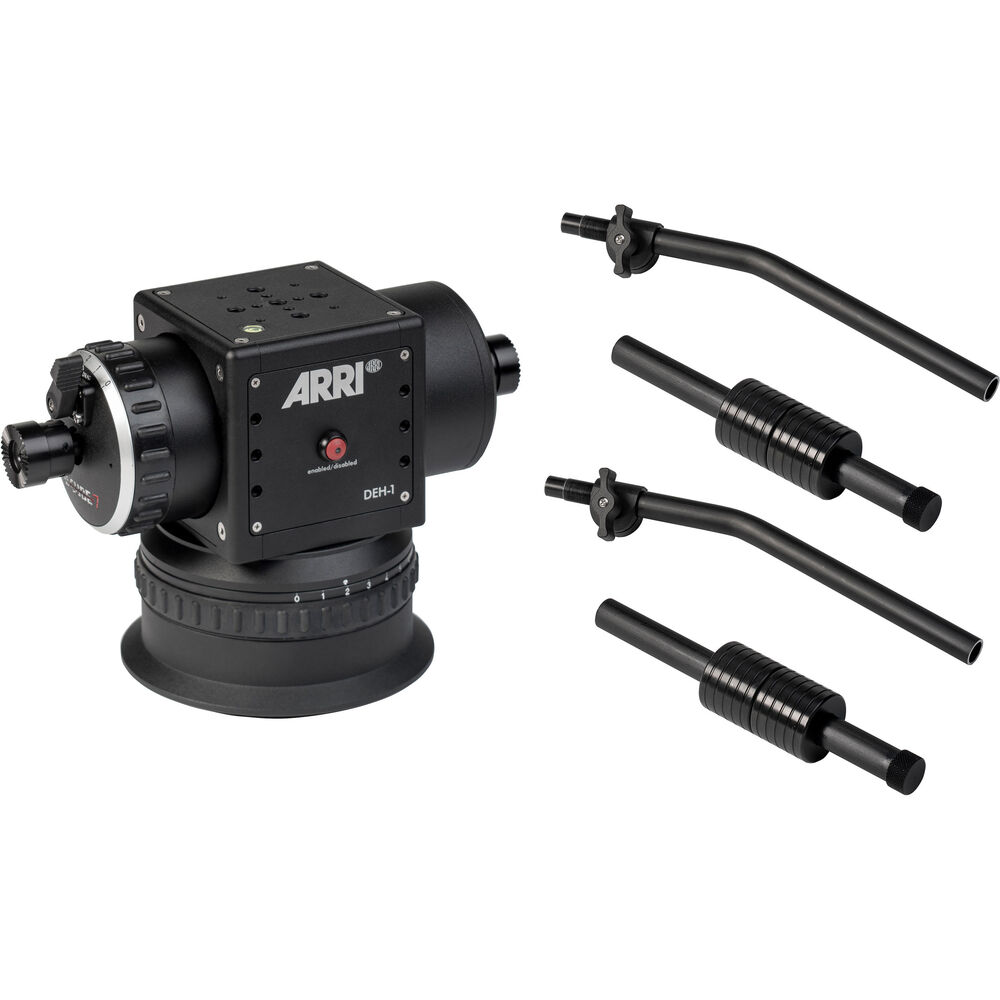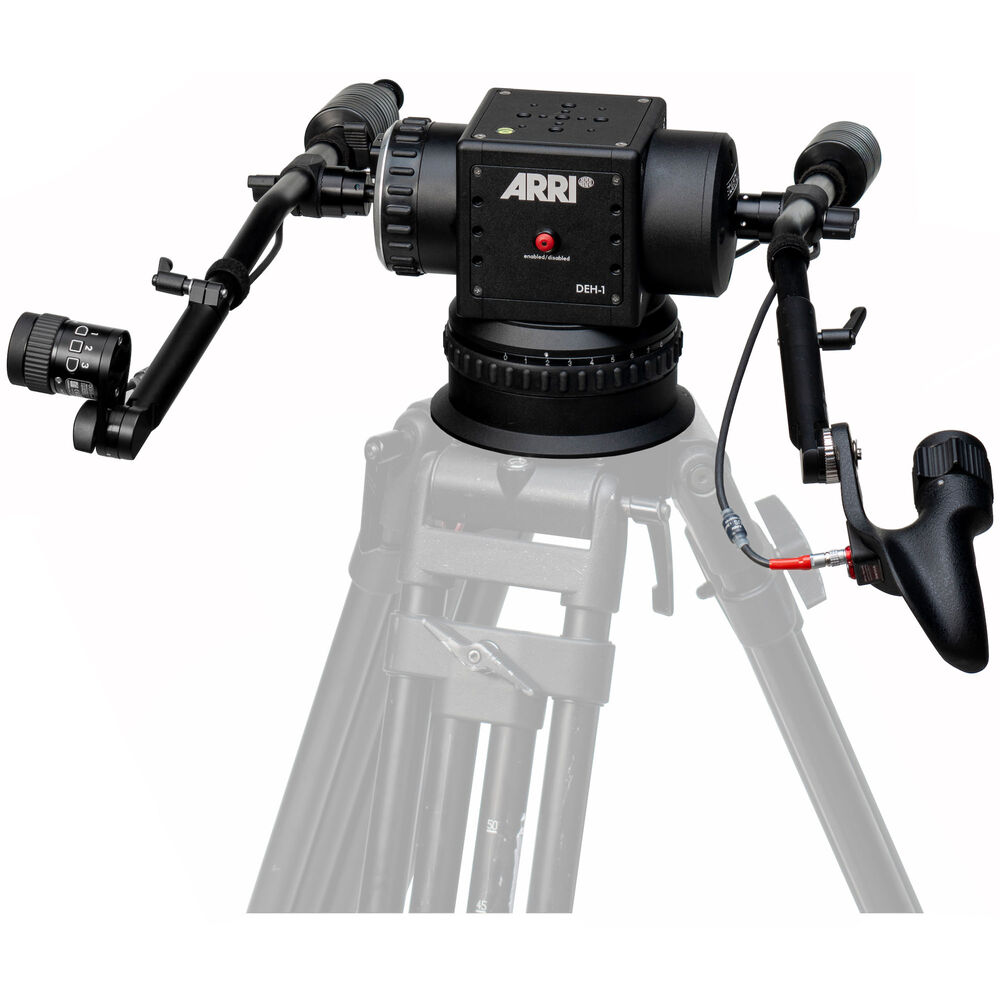 The DEH-1 Pro Set, OCU-1, Right Rocker from ARRI pairs the DEH-1 head with an Operator Control Unit OCU-1 and a right-hand Master Grip rocker-style zoom control. Together, these components offer fluid head and handgrip/fingertip control as an alternative to handwheel or joystick-based remote control of the SRH-3 Stabilized Remote Head.