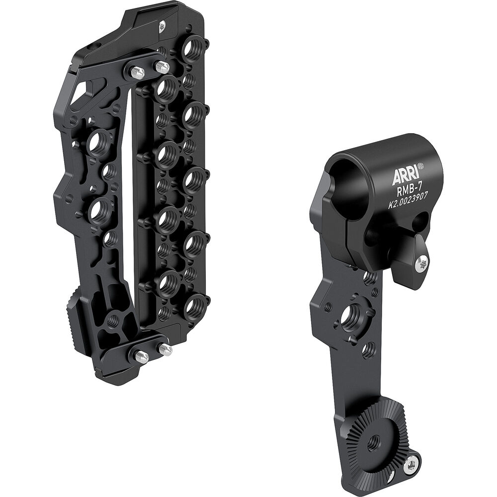 This ARRI Lightweight Support Set is designed to support the sides of the ALEXA 35 cinema camera. The set includes the CSB-1R camera side bracket, the CSB-1L camera side bracket, the CSB-1R camera side bracket extension, and the RMB-7 rod mounting bracket. Read more below about the items in this kit.