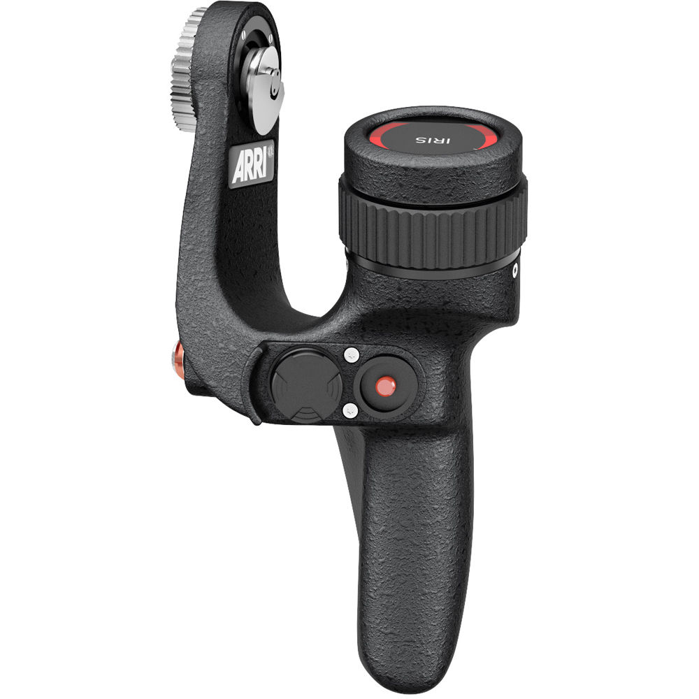 The ergonomic design of the Master Grips reduces strain, enabling extended handheld operating; an "eyebrow"-type shield protects against accidental triggering and doubles as a finger rest. The left-handed wheel is one of four available Master Grip options that can be combined in right- or left-handed pairs. The rocker grips enable super-smooth zooming, while the thumb wheels are suited for focusing or iris, or adjustments. An integrated touchscreen and a 5-way joystick each offer easy setup of the ARRI Master Grips.