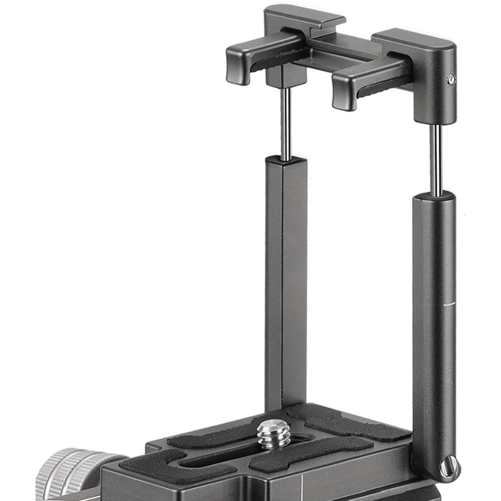 The 70mm Arca-Swiss Plate with Smartphone Adapter from Benro is a 2-in-1 camera plate and smartphone adapter designed into one device. The unit features an Arca-Swiss style camera plate compatible with most Arca-Swiss style ballheads, 3-way heads, and gimbal heads, and the included adapter allows you to mount a smartphone to the plate for use with a tripod head for both photo and video applications. The plate is constructed out of high-quality CNC machined aluminum, and stainless steel rods securely mount a smartphone to the camera plate. Additionally, a cold shoe mount is also provided for attaching additional accessories such as a light or microphone.