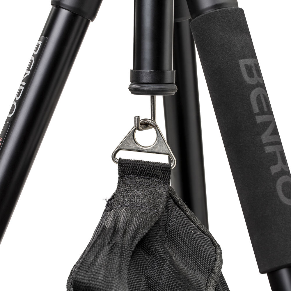 The A2573F is a 2-stage/3-section tripod featuring a flat base center column. With the head attached, the tripod reaches a maximum height of 70" with the column fully extended. With the column retracted, it stands at approximately 63" maximum. The minimum height is 16.3", which is an advantageous low height that isn't common among most tripods. At this height, you can set up the tripod for low angle shots in time-lapse and other applications. Each leg of the tripod is independently adjustable into three positions. Being able to snap the legs into one of these three positions will let you set up quickly and efficiently. Making things even more efficient, the center column has a leveling adapter so that you can adjust the position of the fluid head without having to adjust the tripod legs. The center column also has a weight hook for sandbags and other loads you can hang off of it for additional stability. The A2573F tripod features rubber and spiked feet for use on virtually all types of surfaces.