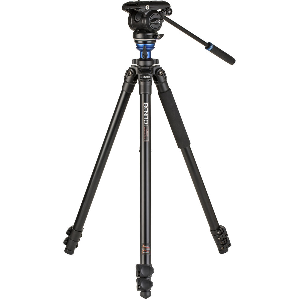 The A2573F Aluminum Single Tube Tripod with S4Pro Fluid Video Head from Benro supports up to 8.8 lb loads and can be carried around fairly easily thanks to its compact and lightweight design. Moreover, with the head featuring a 60mm flat base and 3/8"-16 threaded hole, it can be removed from the tripod and efficiently mounted directly on sliders, jibs, and other support gear. Overall, you get a versatile system with single-tube legs that fold up neatly.