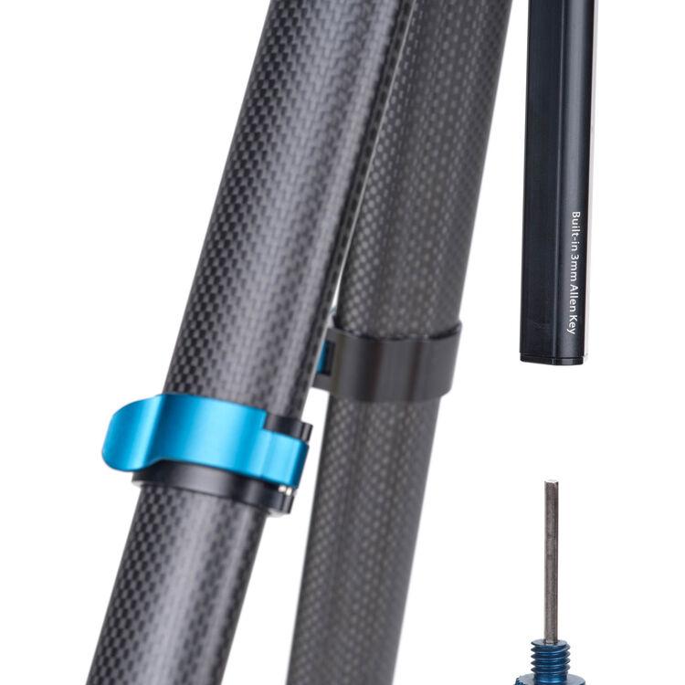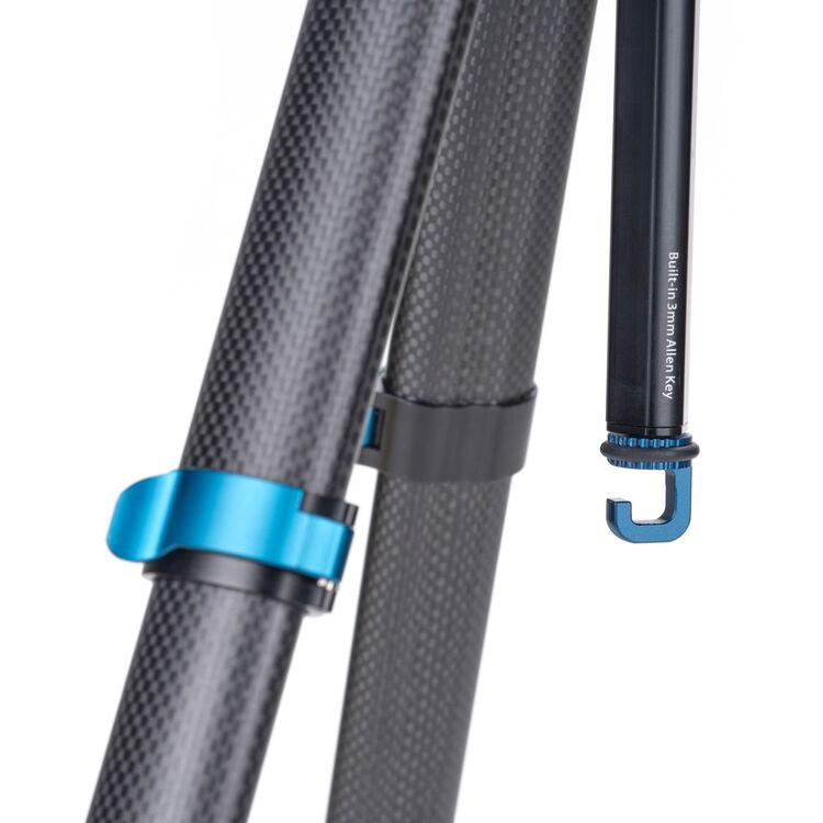 A sleek black travel option for content creators who switch between cameras and smartphones, the BlackBird Carbon Fiber Tripod with N00P Ball Head from Benro also comes with an Arca-type compatible smartphone mount and carrying case, adding versatility to portability. It supports payloads of up to 8.8 lb with a maximum working height of 59.8", folding down to a compact 18.1". The five-section tripod legs feature aluminum flip locks and non-slip rubber feet for added stability, while additional accessory mounts offer compatibility with other equipment.