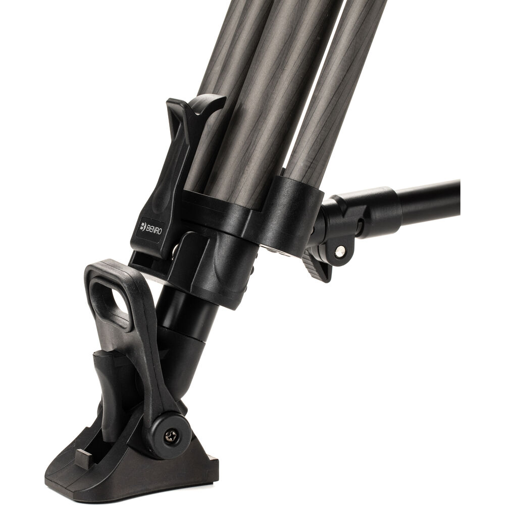 Ideal for teleprompters or large camera rigs, the Benro BVX18 Carbon Fiber Pro Video Head and Tripod includes both a video head and tripod system with a load capacity of 39.6 lb. The BVX18 can reach up to 66.5 inches and features two-stage, three-section legs with flip locks. 8-step pan and tilt controls allow for quick and easily duplicated movements.