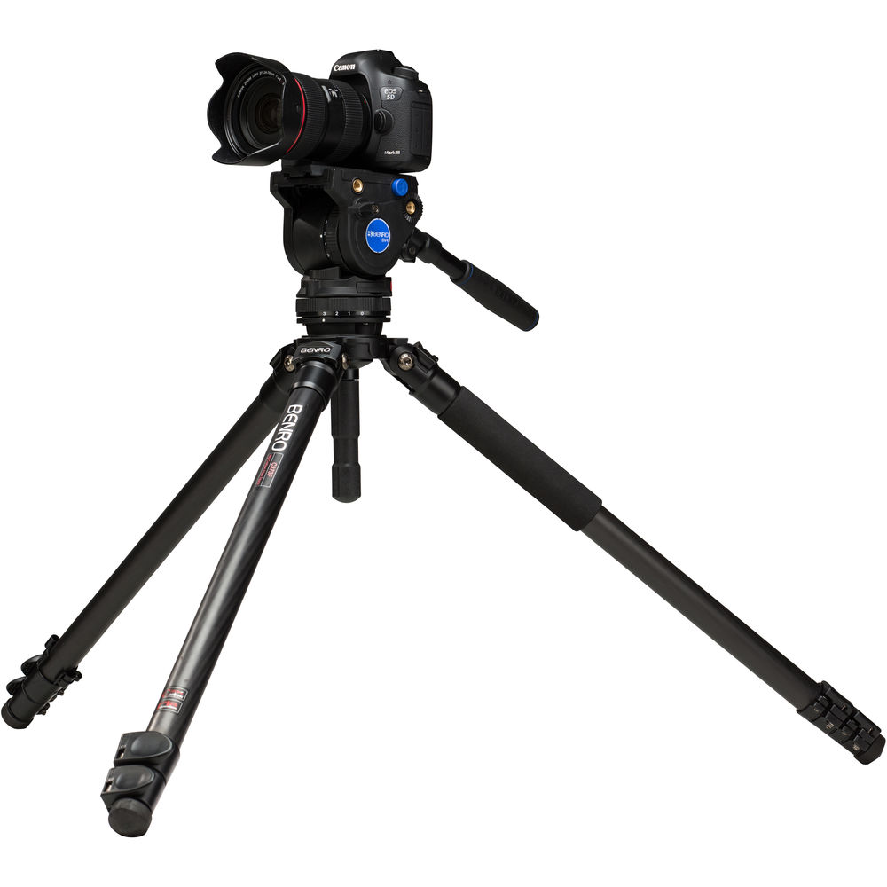 Create stable video with the C373F Series 3 Carbon Fiber Video Tripod and BV4 Head from Benro. Able to hold a payload of up to 8.8 lb, this tripod is a great choice for lightweight kits, especially with numerous video-specific features. The BV4 head features side controls for adjusting the 6-step counterbalance as well as the independent 4-step pan and tilt drag. The 2-stage tripod legs feature flip legs locks for fast adjustments and have a 75mm bowl on the top for balancing the head. The tripod system can be adjusted within a height range of 12.2 to 64.2", and it offers two 3/8"-16 accessory threads for a monitor, audio recorder, or more. It comes with both rubber and spiked feet for working in a variety of environments. A carrying case is included as well.