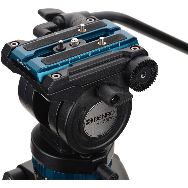 The carbon fiber C572LLKH Lightning Lock Tripod Kit with KH Head from Benro pairs the 60mm bowl KH video head with the superfast Lightning Lock tripod featuring single flip-lock adjustments. The KH head features a 15 lb payload and continuous pan drag. This tripod kit comes with convertible spiked/rubber feet and a carrying bag.