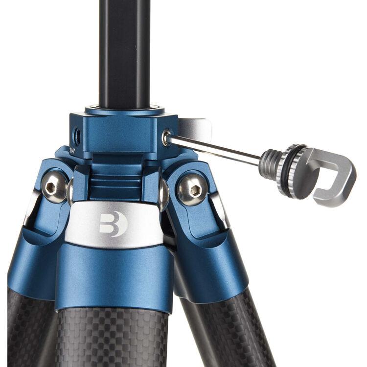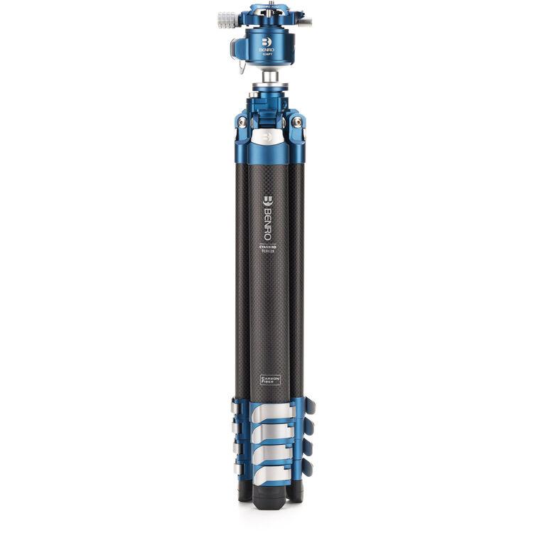 The CyanBird Carbon Fiber Tripod with G36PT Inverted Ball Head from Benro is a travel-friendly tripod that can handle heavy setups wherever you go. Boasting a sleek blue and black design, this lightweight and versatile tripod is perfect for photo, video, and content creation. It has a load capacity of 44.1 lb and extends to a height of 62.8", yet easily folds down to just 18.6", making it a great fit for any backpack or camera bag. The center column features a hidden Allen key allowing users to split the column to provide low camera angles or macro imaging. A carrying case is also included for easy transport.