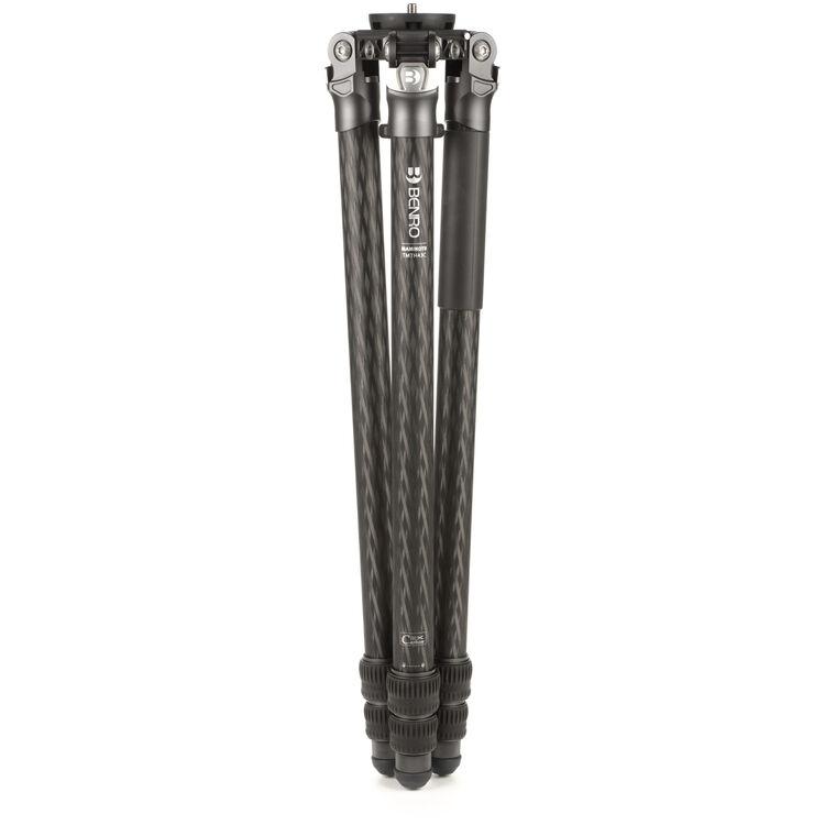 The Mammoth 3-Section Carbon Fiber Tripod from Benro is lightweight, robust, easy to setup, and made for heavy loads. It has a maximum height of 60.8" and an impressive load capacity of 55.1 pounds, yet weighs just 4.9 pounds. The carbon fiber legs offer independent leg spread, three locking angles, and durable aluminum twist-locks. The tripod includes a head platform with a standard 3/8"-16 mounting thread to be compatible with almost any tripod head. The leg apex has a quick release lever so you can easily swap the interchangeable 75mm bowl and level a camera in seconds, even on uneven terrain. The apex has a hollowed design to reduce weight, and three built-in 3/8"-16 mounting holes for adding accessories like microphones and monitors.