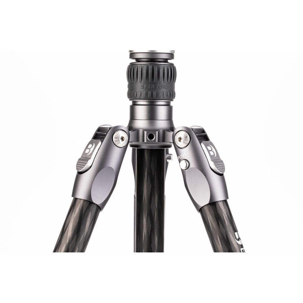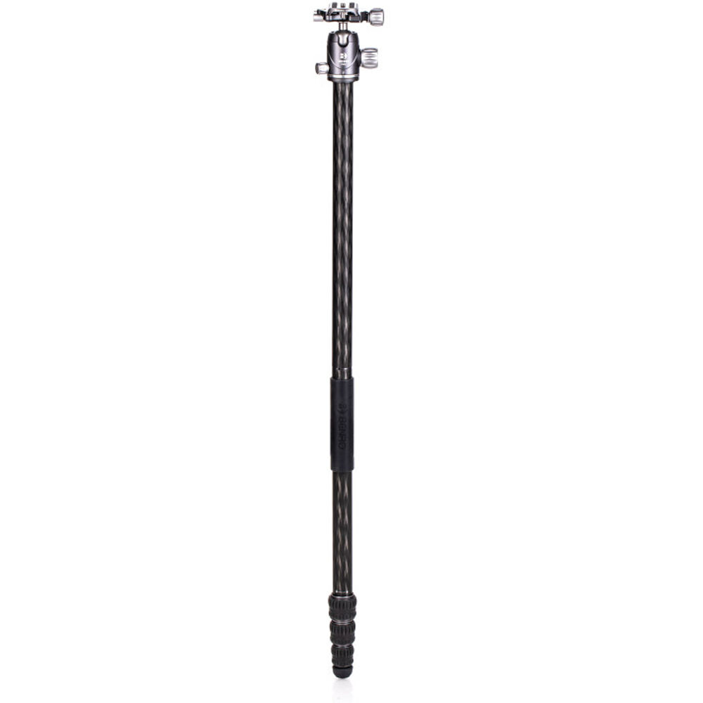 The Rhino One Series Travel Tripod with VX20 Head from Benro combines a lightweight and versatile carbon fiber leg set with a dual panoramic ball head. With a reverse folding design, it is extremely portable and is equally suited for the studio, outdoors, and travel. The legs offer independent spread and three locking positions and incorporate automatic leg angle adjustment for fast and sure setup. The legs are reversible for inverted shooting and storage, and the aluminum leg spider features three 1/4"-20 accessory mounts for extension arms, monitors, lights, and more. For shoots where even a lightweight tripod may be more than required, the center column attaches to a removable leg to create a full-sized monopod.