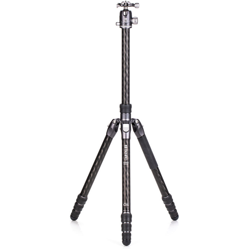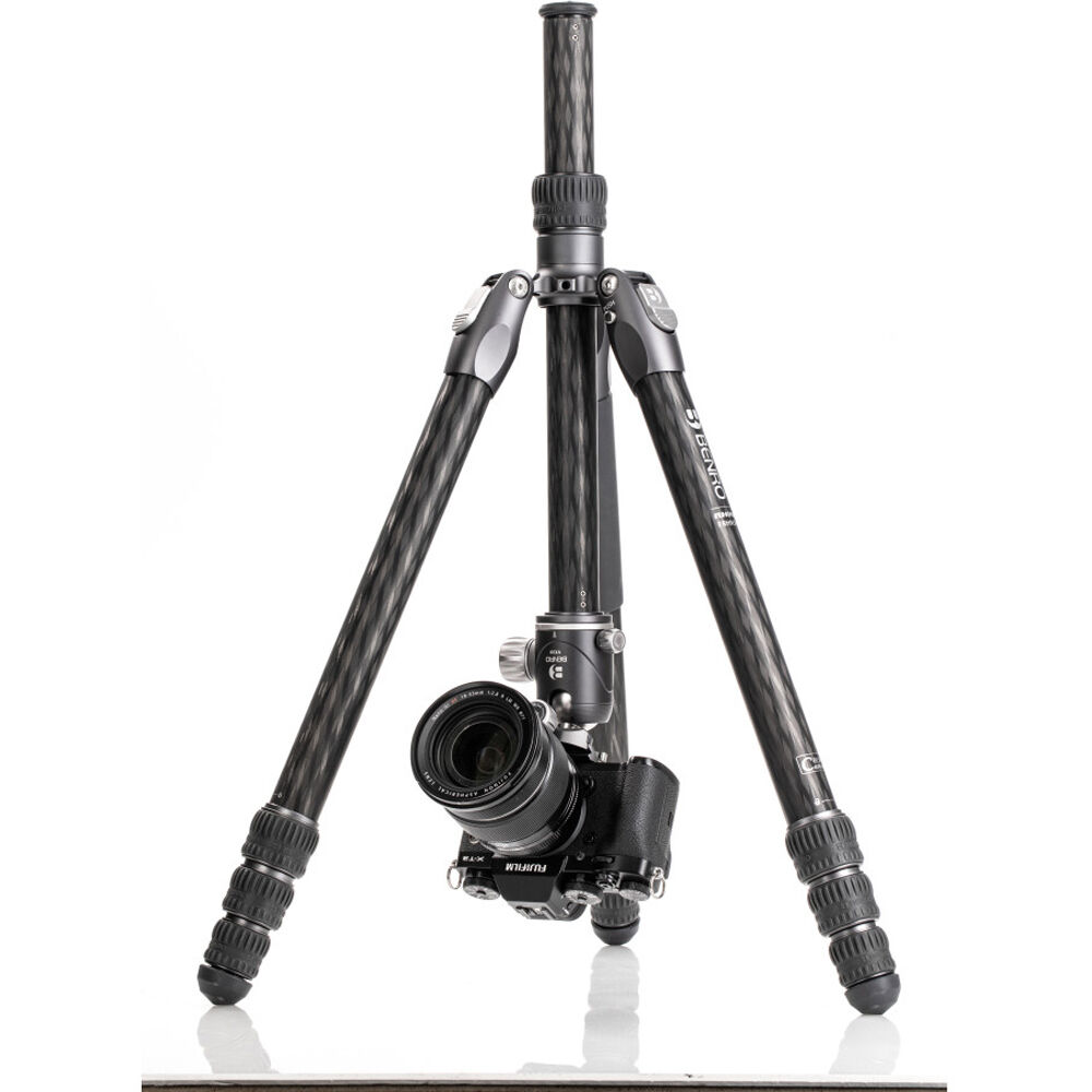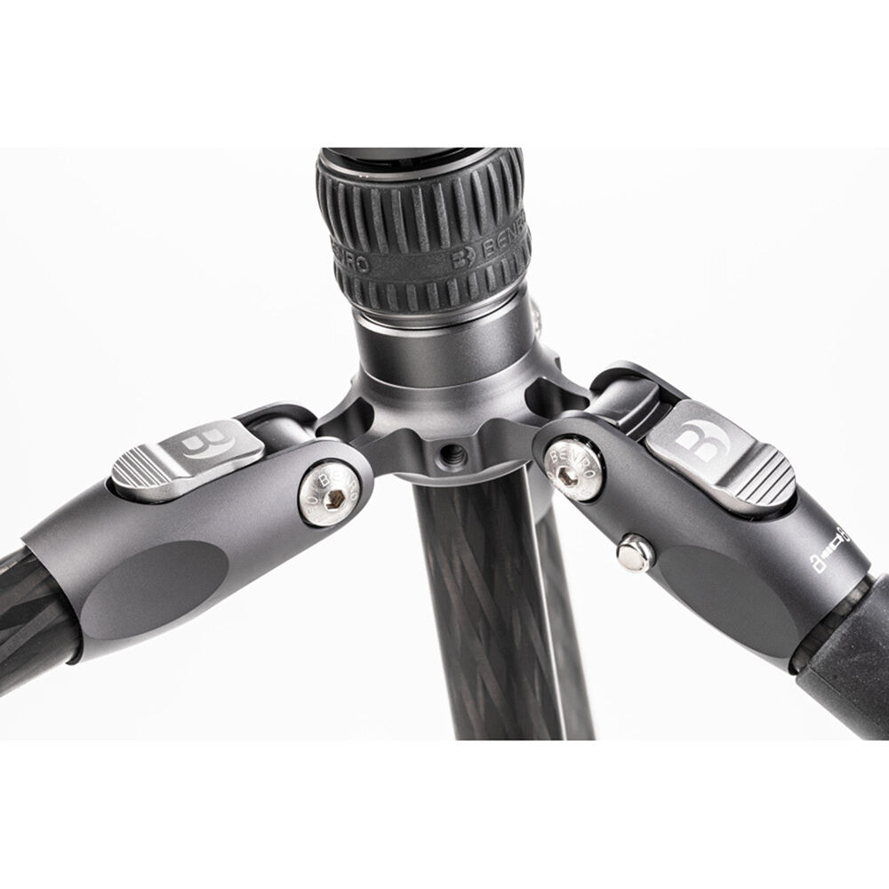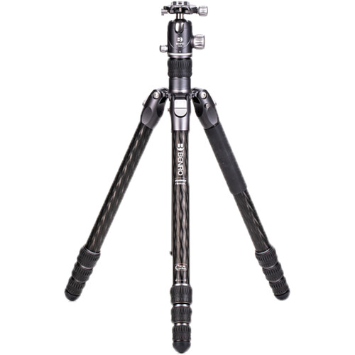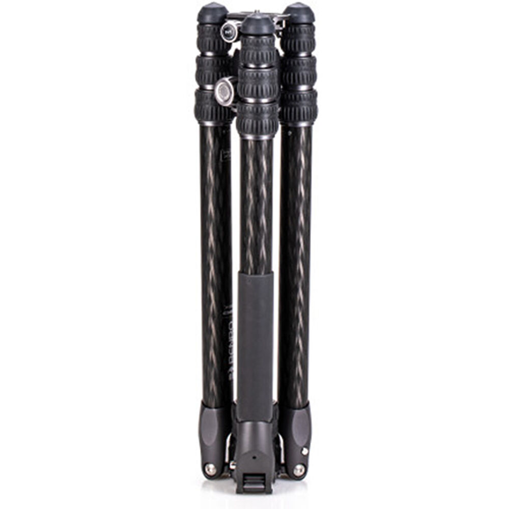 The Rhino Three Series Travel Tripod with VX30 Head from Benro combines a lightweight and versatile carbon fiber leg set with a dual panoramic ball head. With a reverse folding design, it is extremely portable and is equally suited for the studio, outdoors, and travel. The legs offer independent spread and three locking positions and incorporate automatic leg angle adjustment for fast and sure setup. The legs are reversible for inverted shooting and storage, and the aluminum leg spider features three 1/4"-20 accessory mounts for extension arms, monitors, lights, and more. For shoots where even a lightweight tripod may be more than required, the center column attaches to a removable leg to create a full-sized monopod.