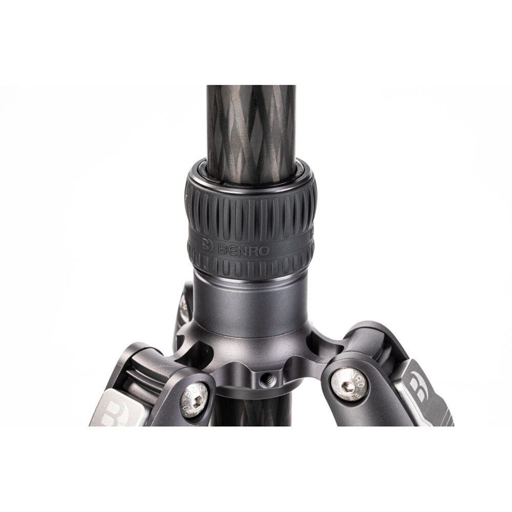 The Rhino Two Series Travel Tripod with VX25 Head from Benro combines a lightweight and versatile carbon fiber leg set with a dual panoramic ball head. With a reverse folding design, it is extremely portable and is equally suited for the studio, outdoors, and travel. The legs offer independent spread and three locking positions and incorporate automatic leg angle adjustment for fast and sure setup. The legs are reversible for inverted shooting and storage, and the aluminum leg spider features three 1/4"-20 accessory mounts for extension arms, monitors, lights, and more. For shoots where even a lightweight tripod may be more than required, the center column attaches to a removable leg to create a full-sized monopod.