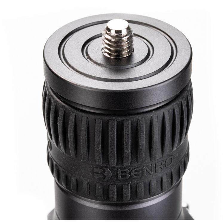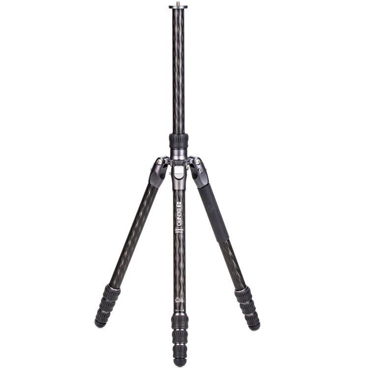The Rhino Two Series Carbon Fiber Tripod from Benro has a maximum height of 66.3", a load capacity of 36.6 pounds, and is compatible with any type of ball head, gimbal, or pan/tilt head. The reverse-folding design allows the tripod to fold down to a compact 25.2" for easy storage or transport. Each leg features an automatic leg angle adjustment button that makes it easy to adjust leg angles for low-level positioning or leveling on uneven terrain. The center column and one leg can be removed and combined into a 69" tall monopod for shooting conditions where a tripod may be too bulky or slow, as when shooting sports or wildlife. Each leg has a rubber foot and an interchangeable steel spike for traction on all kinds of surfaces.