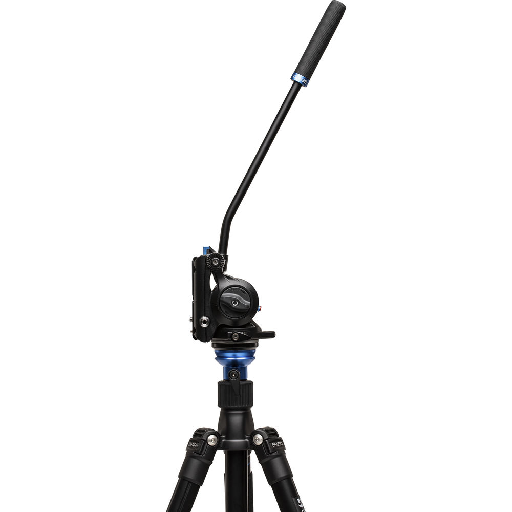 The Benro S4Pro is a compact fluid video head ideal for mirrorless and DSLR camera setups weighing up to 8.8 lb. Featuring a 60mm flat base with a 3/8"-16 threaded hole, it can be used with matching 60mm flat base tripods and tripods with flat base adapters. At the same time, thanks to the flat base, it can be mounted on sliders, jibs, monopods, and other support gear. It can efficiently be moved between such gear.