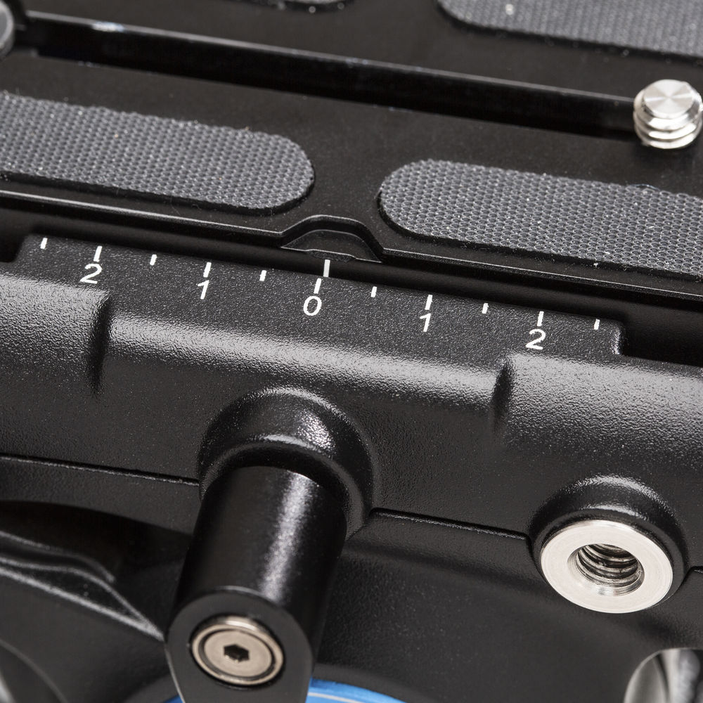 Some parts of the head are made of magnesium and other parts of aluminum. Virtually the entire head, including its knobs, is made of robust yet lightweight metal. A pan bar is included that can be attached to a rosette adapter on the left or right side of the head, for left- or right-handed users. A camera plate is included that can be adjusted forward/backward to let you find the optimal balance for your camera. A safety lock on the plate ensures that once mounted, the plate won't slip out if you move it in either direction too much. Two camera screws are supplied—1/4"-20 and 3/8"-16—that can be stored underneath the camera plate on the head itself, in dedicated slots. For attaching accessories, there's a 1/4"-20 threaded hole on each side of the head to which you can secure articulating arms.