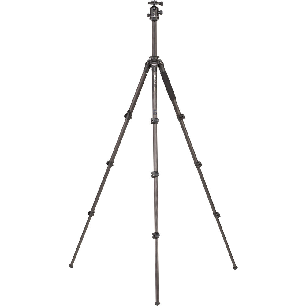 The TAD28CB2 Series 2 Adventure Carbon Fiber Tripod with Head supports up to 26.5 lb, weighs 4.1 lb, extends up to 65.4", and folds down to 24.6". Its 4-section legs use flip lock levers for adjusting the height of each leg. A foam grip on one of the legs enables you to securely hold the tripod and protects your hand during cold weather.