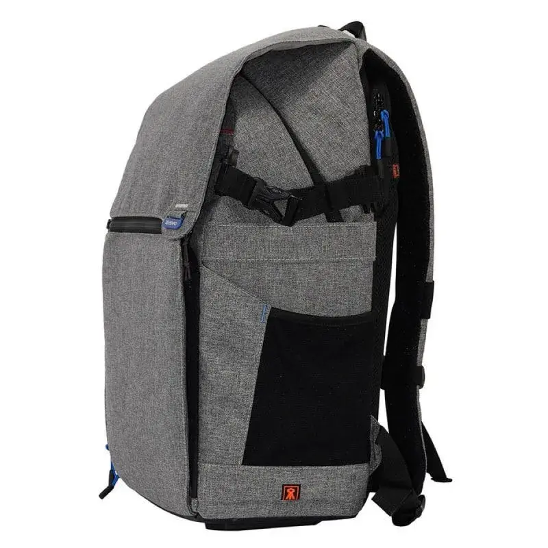 Traveler Series Camera bag is specially designed in that the upper part is a little wider than the lower part..The upper and lower layer design and special security zipper in the middle make the bag innovative and creative. With a new type of linen fabric,it has good softness.And it has broken the traditional design style and ushered in a light and casual style of photography Blue Metal Logo with fashionable and beautiful appearance has developed casual and fashionable feature among photographical gears.