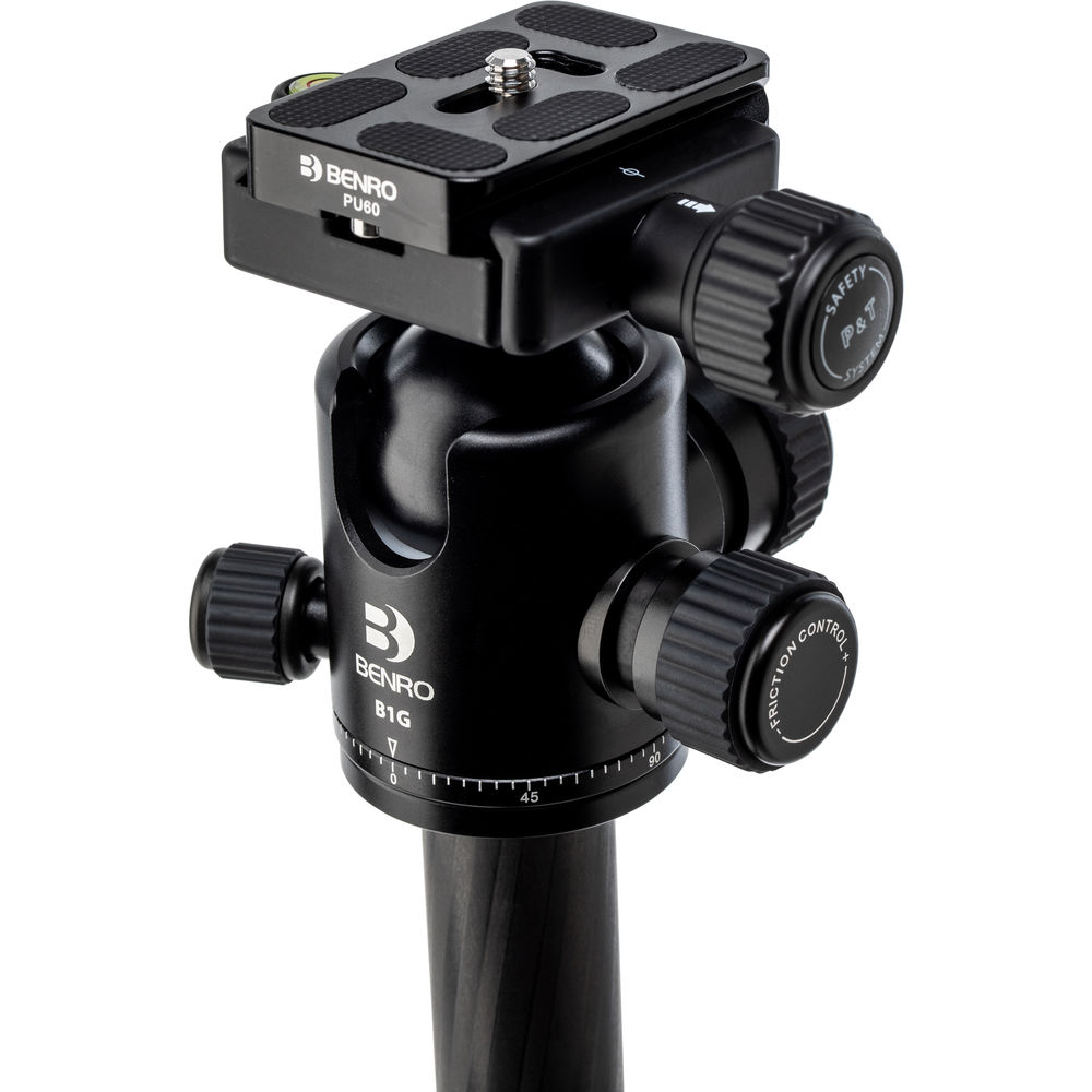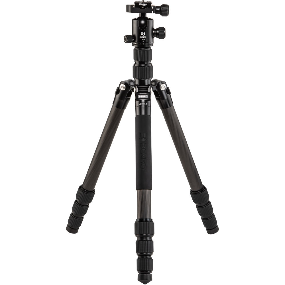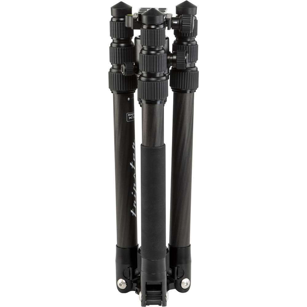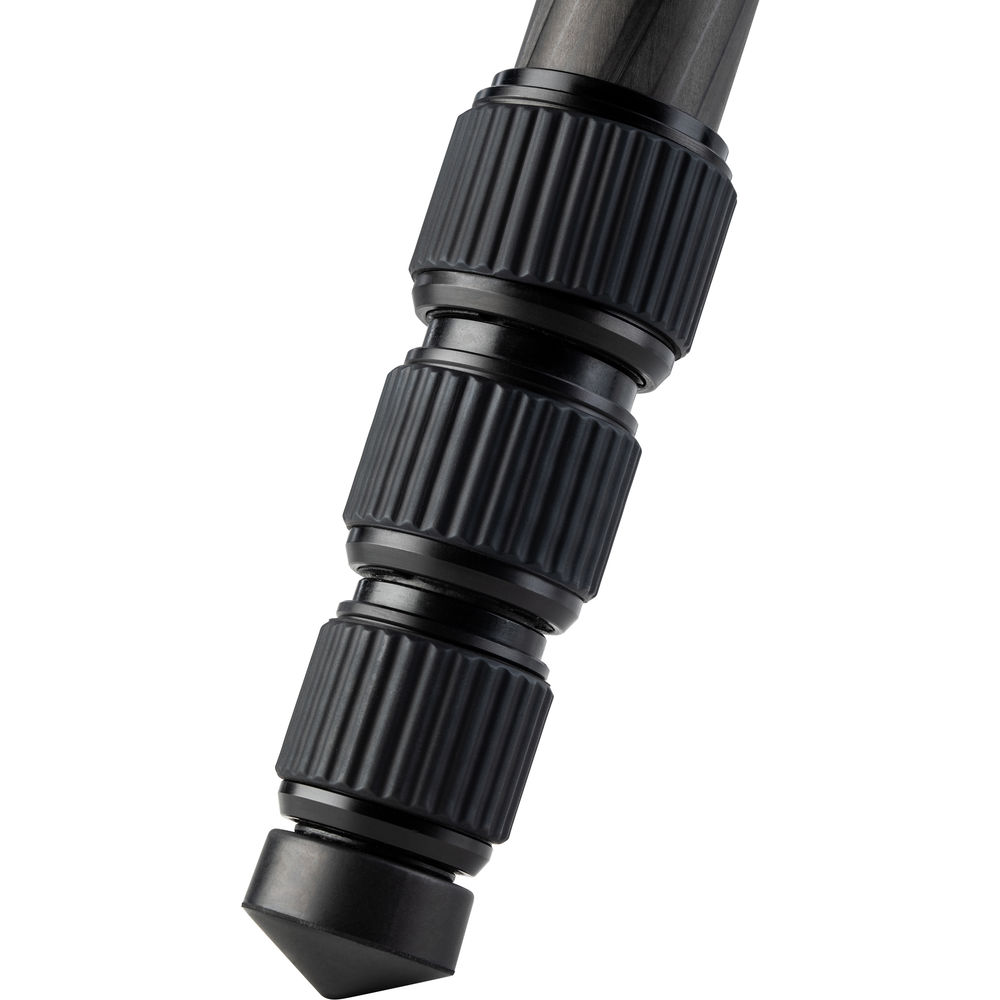 The black 2 Series Tripster Travel Tripod from Benro is a four-section carbon fiber tripod with a two-section center column that combine to reach a maximum height of 61.4", while weighing 3.5 lb. Splaying the legs completely out, the support drops to a minimum height of 15.6". Moreover, the legs fold in the reverse to a compact 15.7", so you can carry it to the next location. The removable center column and one leg can combine to create a monopod with a maximum height of 64.2". The Arca-type compatible ball head has a load capacity of 26 lb and includes a quick release plate with a 1/4"-20 camera mounting thread. Additionally, a 1/4"-20 socket located on the yoke of the tripod is used to attach other accessories that would aid you in creating a photograph.