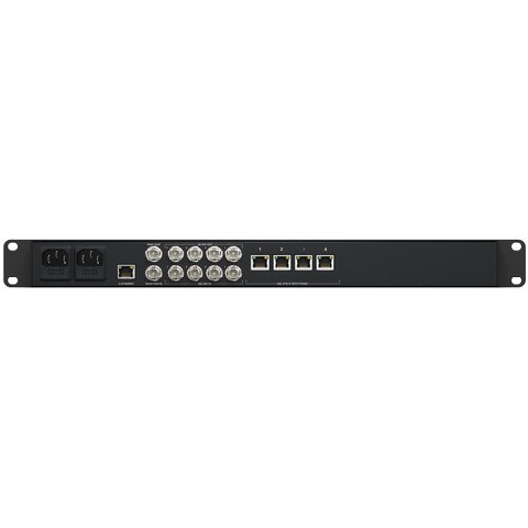 Bring your 12G-SDI broadcast gear up to SMPTE-2110 compliance with this 2110 IP Converter 4x12G PWR from Blackmagic Design. The converter provides bidirectional 12G-SDI to SMPTE-2110 IP video conversion connections, and it supports up to four Studio 6K Pro cameras via its 10G Ethernet connections with a 12G-SDI input for each connection. It also supports providing power to the Studio cameras over each 10G Ethernet connection via PoE. Its 1 RU design fits in a standard studio rack, as well as a 12G-SDI return input and redundant power.