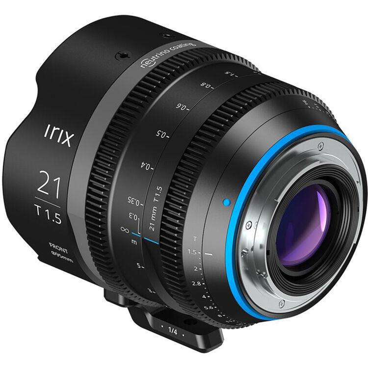 Designed for up to 8K cine-style image capture, the PL-mount 21mm T1.5 Cine Lens from IRIX produces a distortion-free, wider-angle look that is compatible with sensor sizes up to full-frame 35mm. External features include a 95mm front diameter, 0.8 MOD gears, luminous focus marks in feet, and a detachable 1/4"-20 support foot. Internally, 11 blades produce smooth, rounded bokeh, and four seals protect against inclement weather and dust. A fast T1.5 maximum aperture enables the IRIX 21mm T1.5 Cine Lens to capture images in low light conditions without the need for super-high ISO settings.