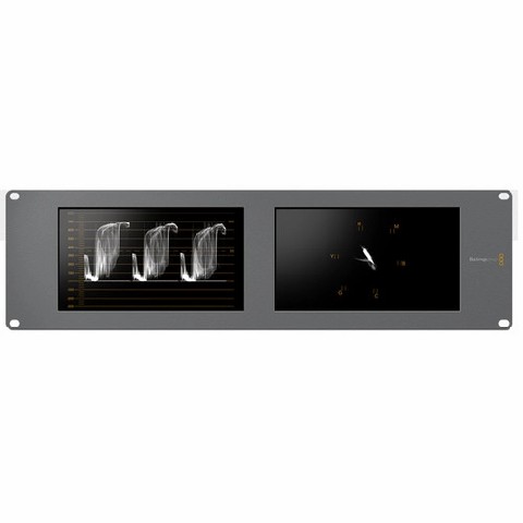 The Blackmagic Design SmartScope Duo 4K Rack-Mounted Dual 6G-SDI Monitors is a monitoring solution for studio and location productions, displaying video with resolutions up to 3840 x 2160 at 30p. It features two 8" monitors each with a loop-through SDI input and output. The inputs are auto-sensing/selecting so you don't have to worry about matching the input format; the monitor will display any supported format that you feed it. You can choose to select to display either the input video or one of six scope displays, while the input video passes through the monitor to downstreamed devices.