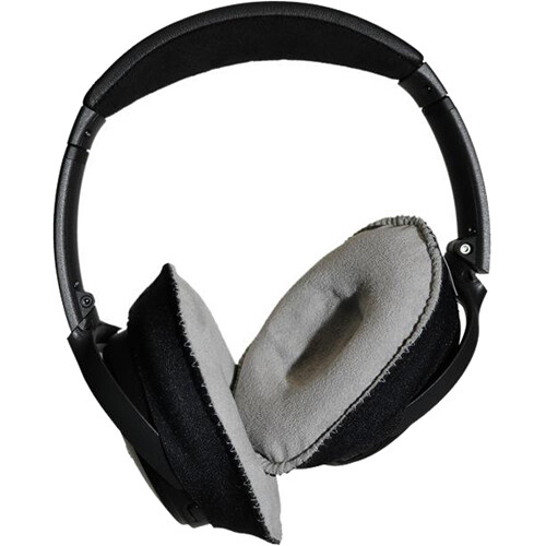 The gray Bluestar CanSkins are earcup covers designed to deliver enhanced comfort and appearance for Bose QuietComfort 35 wireless headphones in use on the go or during studio sessions. This pair of covers features soft, breathable synthetic chamois and neoprene rubber sides, allowing a secure fit and improved temperature regulation. Protect your headphones against sweat damage and enjoy longer periods of listening without inducing distortion or dampening. Simply stretch the CanSkins around your existing earcups; no tools required. Freshen them up in the washing machine or wash by hand.