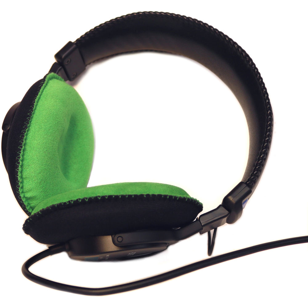 The green Bluestar CanSkins are earcup covers designed to deliver enhanced comfort and appearance for Sony MDR-7506 headphones in use on the go or during studio sessions. This pair of covers features soft, breathable synthetic chamois and neoprene rubber sides, allowing a secure fit and improved temperature regulation. Protect your headphones against sweat damage and enjoy longer periods of listening without inducing distortion or dampening. Simply stretch the CanSkins around your existing earcups; no tools required! Freshen them up with a wash in the machine or by hand.