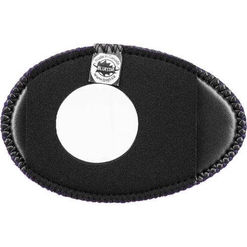 The Oval Long Viewfinder Eyecushion in purple fleece, from Bluestar, features outside dimensions of 5 x 3.3" to securely fit over many common external and built-in viewfinders. These include those of the Panasonic AF101, HDX 900P, HMC81, HPX2100, or HPX3000, the Sony FS100E, PMW-200, PXW-X70, PXW-X200, or PXW-Z90V, the JVC GY-HMC750, and many more. This fleece version is made of 100% synthetic material and provides a high level of softness and comfort for cold weather while enhancing light blockage. The fluffy feel reduces the rate of heat transfer, making the material feel warmer in cold conditions.