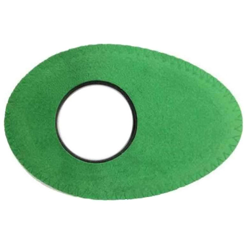 The Oval Long Viewfinder Eyecushion in green Ultrasuede, from Bluestar, features outside dimensions of 5 x 3.3" to securely fit over many common external and built-in viewfinders. These include those of the Panasonic AF101, HDX 900P, HMC81, HPX2100, or HPX3000, the Sony FS100E, PMW-200, PXW-X70, PXW-X200, or PXW-Z90V, the JVC GY-HMC750, and many more. This Ultrasuede version is made of 100% non-woven material consisting of intertwined, brushed, ultra-fine fiber strands. It provides a high level of softness and a superior moisture absorption rate, and it can be used in any climate.