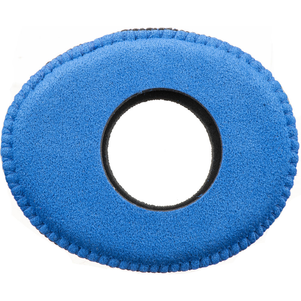 The Oval Small Viewfinder Eyecushion in blue Ultrasuede, from Bluestar, features outside dimensions of 3.8 x 3" to securely fit over many common external and built-in viewfinders. These include the GGS Perfect LCD Viewfinder, JJC ES-A6500G, LCDVF, and Letus Hawk, as well as those of the Sony Betacam, FS7, PXW-X320L, PXW-X320, PMW-400, and PMW-500 cameras. This Ultrasuede version is made of 100% non-woven material consisting of intertwined, brushed, ultra-fine fiber strands. It provides a high level of softness and a superior moisture absorption rate, and it can be used in any climate.
