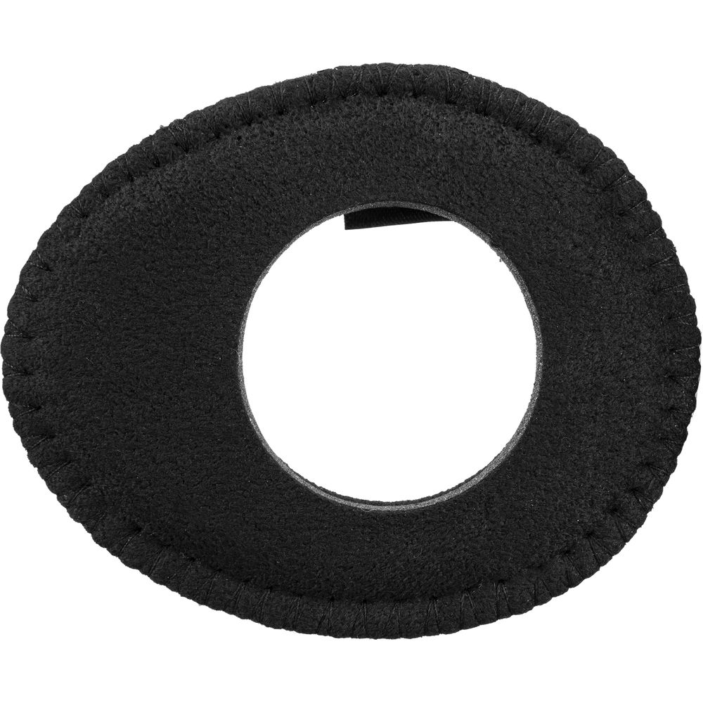 The Oval Ultra Small Viewfinder Eyecushion in black Ultrasuede, from Bluestar, features outside dimensions of 3.3 x 2.6" to securely fit over many common external and built-in viewfinders. These include the Hoodman Hoodeye, JJC Oval Shape EyeShade, JJC Viewfinder, Bolex H16, and the viewfinder of the Panasonic GH5 with a compatible oval eyecup similar to the Hoodeye. This Ultrasuede version is made of 100% non-woven material consisting of intertwined, brushed, ultra-fine fiber strands. It provides a high level of softness and a superior moisture absorption rate, and it can be used in any climate.