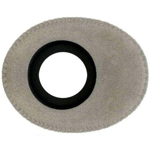 The Oval Ultra Small Viewfinder Eyecushion in gray Ultrasuede, from Bluestar, features outside dimensions of 3.3 x 2.6" to securely fit over many common external and built-in viewfinders. These include the Hoodman Hoodeye, JJC Oval Shape EyeShade, JJC Viewfinder, Bolex H16, and the viewfinder of the Panasonic GH5 with a compatible oval eyecup similar to the Hoodeye. This Ultrasuede version is made of 100% non-woven material consisting of intertwined, brushed, ultra-fine fiber strands. It provides a high level of softness and a superior moisture absorption rate, and it can be used in any climate.
