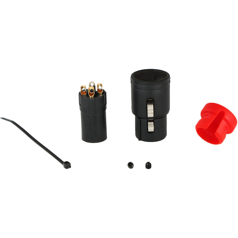 With its space-saving design, the Cable Techniques Low-Profile Right-Angle XLR 3-Pin Female Connector (Standard Outlet, B-Shell, Red Cap) is ideal for use on portable recorders and field mixers in audio bags. Its standard cap has a cable outlet that accommodates cabling with diameters up to 3.4mm while offering 120 degrees of adjustment swing around the 6 o'clock and 12 o'clock positions, allowing perfect placement in an array of configurations. This variant features gold pins, a black shell, and a red cap.
