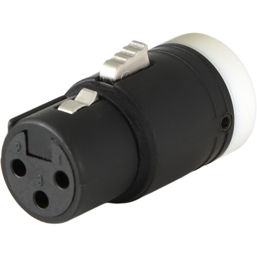 With its space-saving design, the Cable Techniques Low-Profile Right-Angle XLR 3-Pin Female Connector (Standard Outlet, B-Shell, White Cap) is ideal for use on portable recorders and field mixers in audio bags. Its standard cap has a cable outlet that accommodates cabling with diameters up to 3.4mm while offering 120 degrees of adjustment swing around the 6 o'clock and 12 o'clock positions, allowing perfect placement in an array of configurations. This variant features gold pins, a black shell, and a white cap.